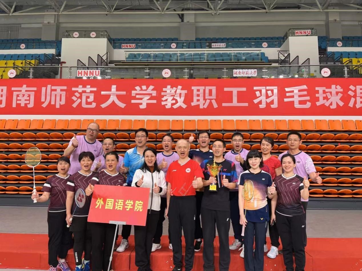 (通讯员 马纳克)在刚刚落幕的2025年湖南师范大学教职工羽毛球混合团体赛中,外国语学院羽毛球队一路披荆斩棘,奋勇拼搏,最终喜获季军,创造了学院在该项赛事中的历史最佳成绩,展现了外院人昂扬向上的精神风貌。