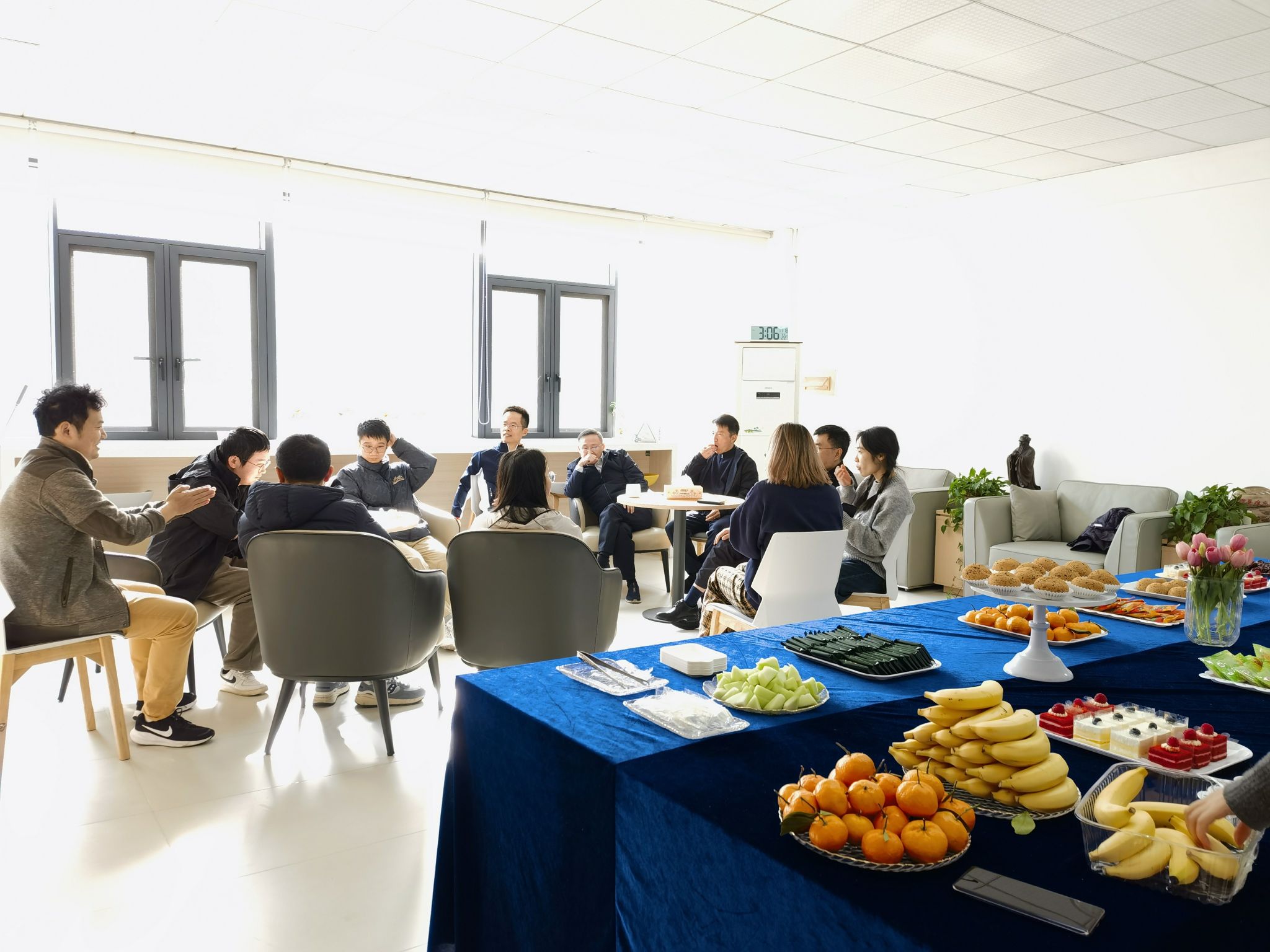 交流环节在温馨融洽的氛围中展开。学院精心准备了精美的茶点与水果,在咖啡与茶的袅袅香气中,新老教师们围坐一堂,畅所欲言。新教师们逐一分享了入职以来的感受、面临的挑战以及对未来的展望,他们就课堂教学、科研启动、项目申请、学生指导及生活起居等方面提出了自己关心的问题。