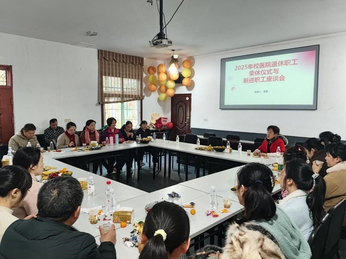 荣休职工座谈会上,孟文华作代表发言,动情回顾了在校医院二十余载行医历程,“能将最美好的年华奉献给挚爱的医学事业,守护校园师生健康,是我一生的荣幸”。朴实真挚的话语道出了老一辈医务工作者的坚守与情怀,打动了在场每一个人。与会人员纷纷回忆与孟文华等同志的共事时光,高度认可荣休职工精湛的专业技术、严谨的工作作风与始终如一的敬业精神 。新进职工代表李琬婷表示将传承前辈的优良传统,在推动医院高质量发展的征程中接好接力棒。 全宏姣盛赞荣休职工的职业风范与人格魅力,她衷心感谢老同志们的长期奉献与坚守,祝福退休生活幸福快乐。她强调,此次座谈会既是对退休同志辛勤付出的致敬,更是一堂生动深刻的职业教育课,“服务师生健康”始终是医院工作的核心使命,希望新进职工尽快融入集体,恪尽职守,与全体同仁共同提升医疗服务水平。刘斌表示“前辈的智慧与汗水铸就了医院今日的坚实基础。我们不仅要铭记前辈的卓越贡献,更要将这份精神薪火代代相传”。接着两位新进职工代表向孟文华前辈献上鲜花,以鲜花寄敬意,以掌声送祝福。