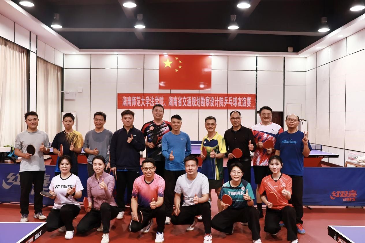 为丰富师生文体生活,搭建跨单位协作平台,12月18日,法学院部门工会与湖南省交通规划勘察设计院联合举办乒乓球友谊赛。