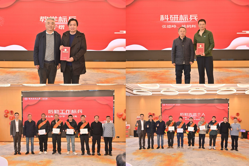 随后,院党建专职组织员唐建文宣读了2025年度表彰决定,对获得“教学标兵”“科研标兵”“后勤工作标兵”及“后勤先进个人”的优秀教职工进行了表彰。“后勤工作标兵”廖胜作为嘉宾代表进行发言,分享了过去一年的收获与感悟,表达了对学院发展的美好祝愿。