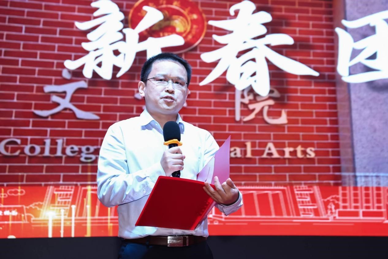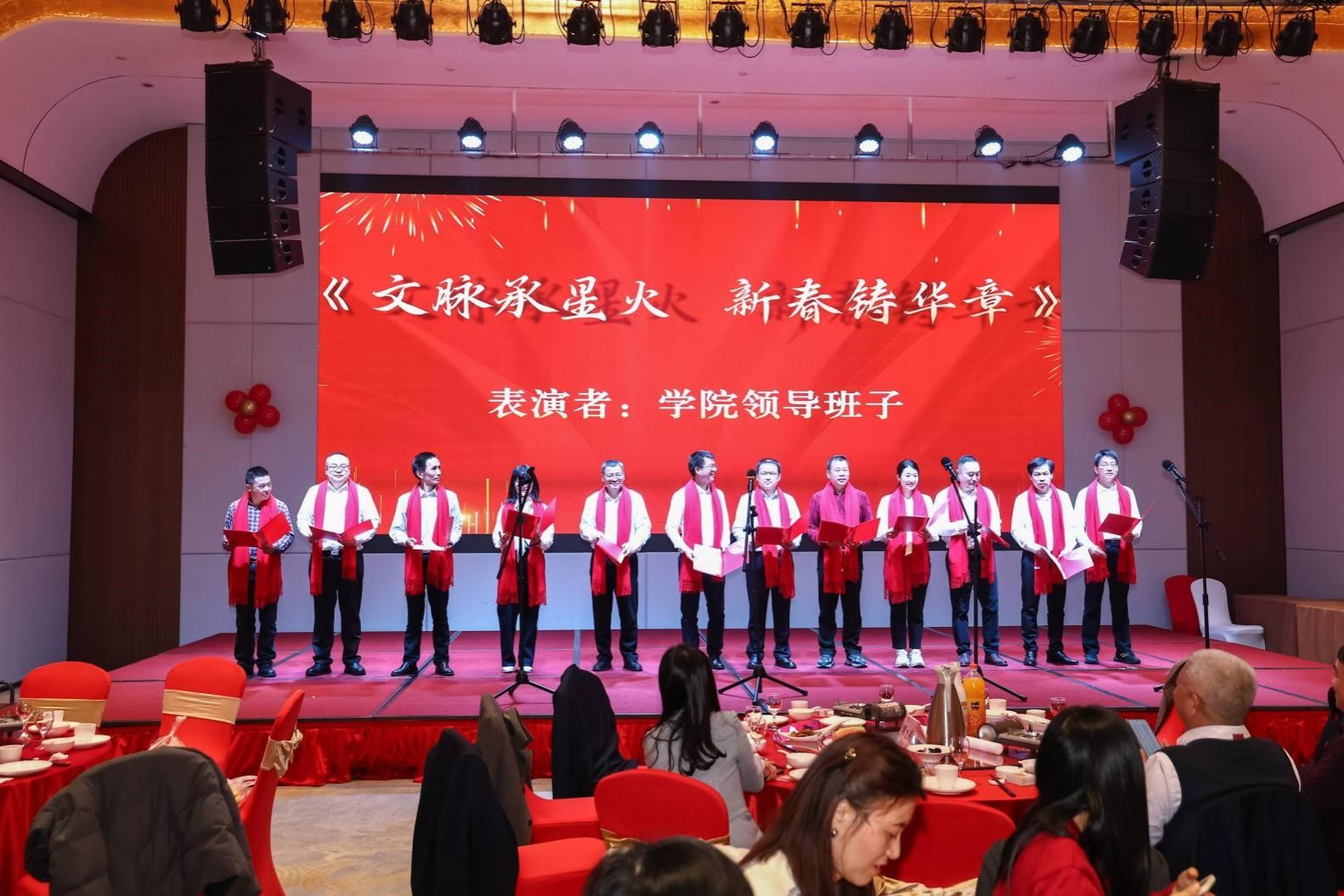 联欢会最后,学院领导班子集体登台,深情朗诵原创诗歌《文脉承星火,新春铸华章》,以铿锵之声表达了传承人文精神、开创学院新篇章的决心与信心,为整场活动画上了圆满句号。