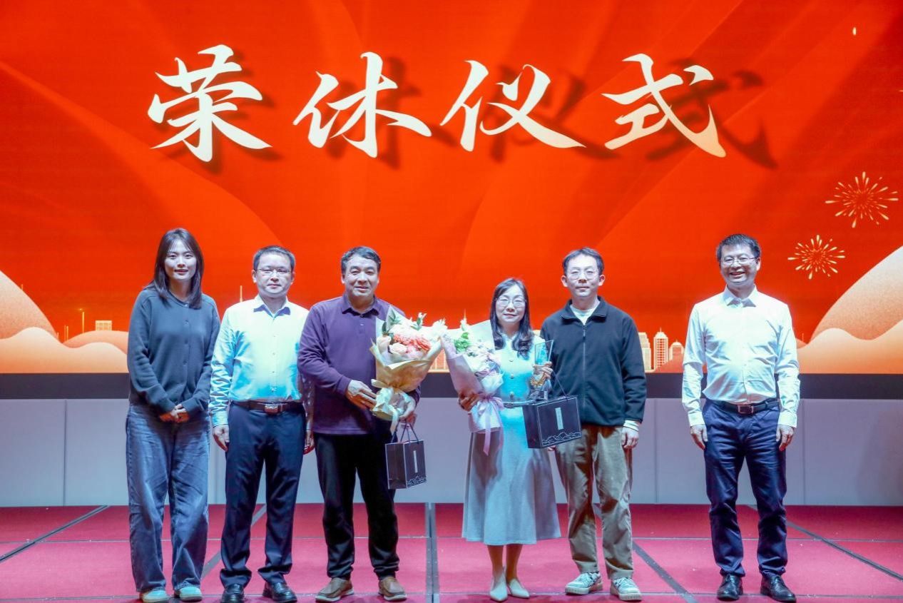 联欢会在庄重温馨的荣休仪式中拉开帷幕。学院党委书记熊剑峰、副院长吕双伟(主持工作)为荣休教师张良田、周葵葵颁发了荣休水晶纪念奖杯与纪念礼品,教师代表向两位老师献上鲜花。张良田、周葵葵老师深情发表了荣休感言,回顾数十载执教生涯,言语中满含对教育事业与学院深厚的热爱。熊剑峰书记代表学院向荣休教师致以崇高敬意和衷心祝福,现场掌声不断,温情涌动。
