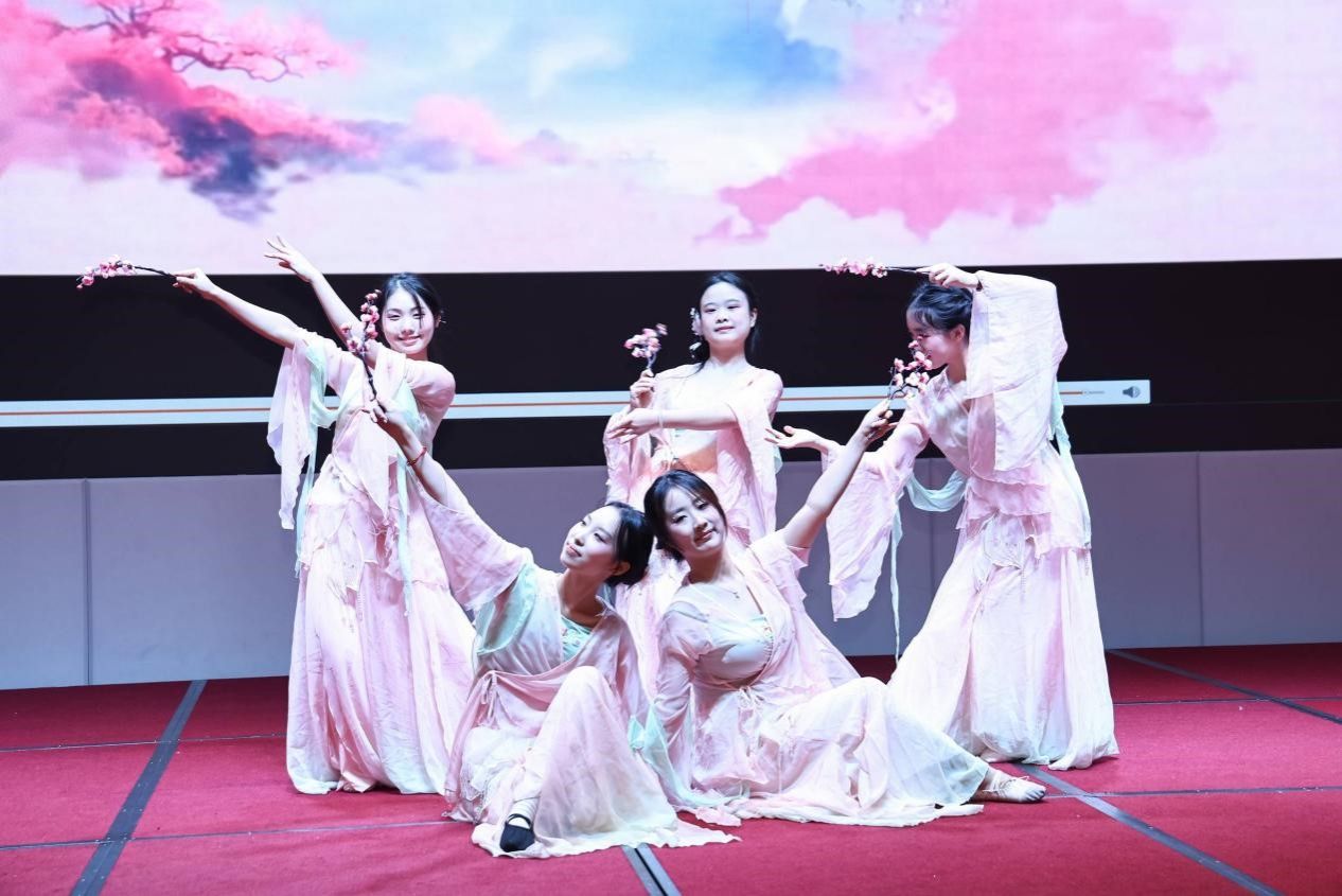 联欢会演出环节在学工办老师们带来的开场舞表演《中华全家福》中正式开始。刘宓蜜、周灿、丛杨、陈天歆、高明阳、彭君、唐清华老师身着鲜艳服装,载歌载舞,配合欢快的乐曲,展现了文学院教职工的活力与团结,瞬间点燃全场热情。高欢欢老师一曲京剧《梨花颂》韵味悠长,将传统戏曲艺术的魅力展现得淋漓尽致。牟方磊老师深情演绎歌曲《香格里拉》,歌声清澈悠扬,仿佛将听众带入那片神圣美丽的净土。学生汉舞队带来的舞蹈《桃花流水》,舞姿柔美、编排精致,配合悠扬的国风音乐,勾勒出一幅春意盎然的诗意画卷。高明阳老师的竹笛独奏《星月神话》音色清澈、情感细腻,笛声如诉,引人沉浸于静谧而浪漫的意境之中。郭小英老师演绎的英文歌曲《DIAMONDS》展现出活力与自信,节奏明快,舞台表现力十足。易瑛老师演唱的经典红歌《映山红》,嗓音嘹亮深情,传递出浓厚的情感与时代记忆。蒋志远老师口琴吹奏《世界赠予我的》,旋律轻快中带着温暖,琴声悠扬,打动人心。凌宏惠老师带来的歌曲《约定》,声线温柔,情感真挚,唱出了对美好情谊的珍视与向往。蒋协众老师一曲《中国娃》铿锵有力,气势昂扬,充满家国情怀,将现场气氛推向高潮。