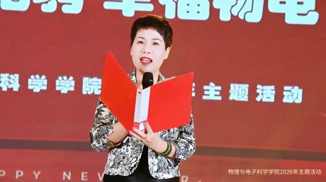 (通讯员 王丹)1月17日,物理与电子科学学院“骐骥驰骋 幸福物电”2026新年联欢会在欢声笑语中隆重举行。学院全体教职工、部分离退休老同志、校友代表与来自湖南三书礼文化发展有限公司的嘉宾齐聚一堂,共贺新春佳节。副校长刘红荣教授出席联欢会。