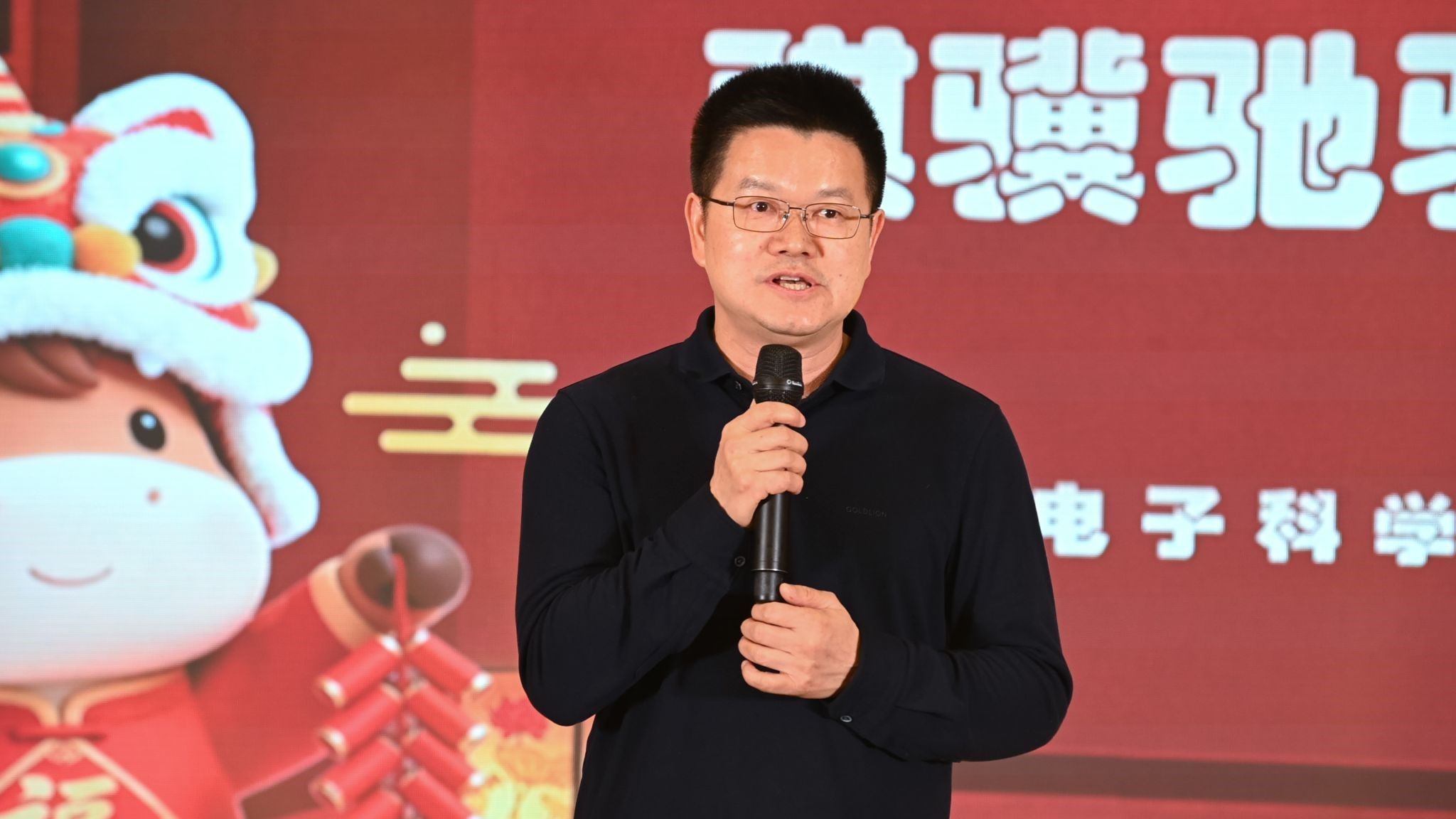 湖南三书礼文化发展有限公司董事长苏文华校友也带来了真挚的分享。他感慨道,是物电学院的培养为自己的创业之路奠定了坚实基础,多年来始终感恩母校的教诲与关怀。他对学院给予的信任与支持表示感谢,期待未来能与学院在更多领域深化校企合作,实现互利共赢,并送上新春祝福。