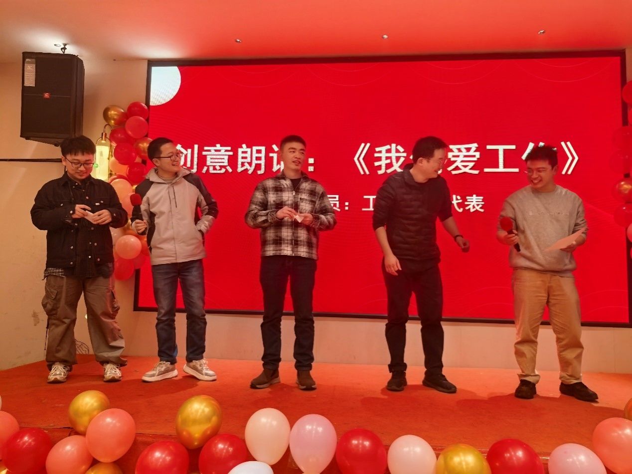 联欢会由2025年新进教师演艺《奔跑》点燃,瞬间把全场激情拉满。院工会《我们爱工作》风趣诗与《教师阵线联盟》创意舞蹈组合表演,展示了全院教职工爱岗敬业、蓬勃向上的精神面貌。教师群组的爵士舞《我会一直顺》动感十足,表达了对生活的无限热情和对未来的美好期许,把现场气氛推向高潮。一首独唱《永不失联的爱》深情款款,阐释了为师有爱、不失人间烟火的气质蕴涵。全体院领导《2026新年之约》诗朗诵声情并茂,大气磅礴,鼓舞人心。
