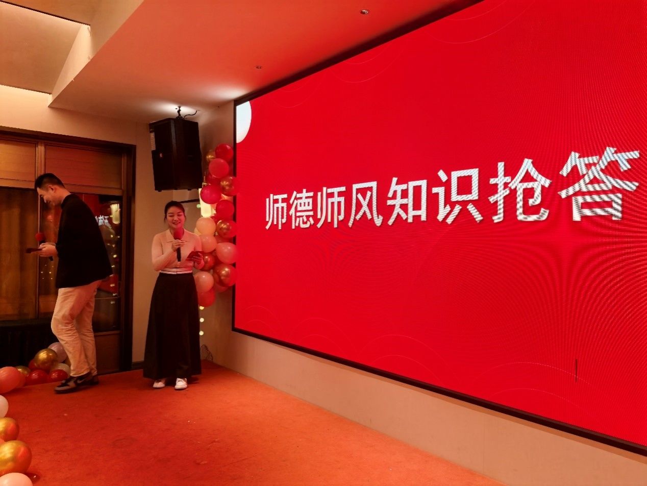 节目表演期间,穿插了党建知识抢答和师德师风知识抢答环节,现场气氛再起新的高潮。