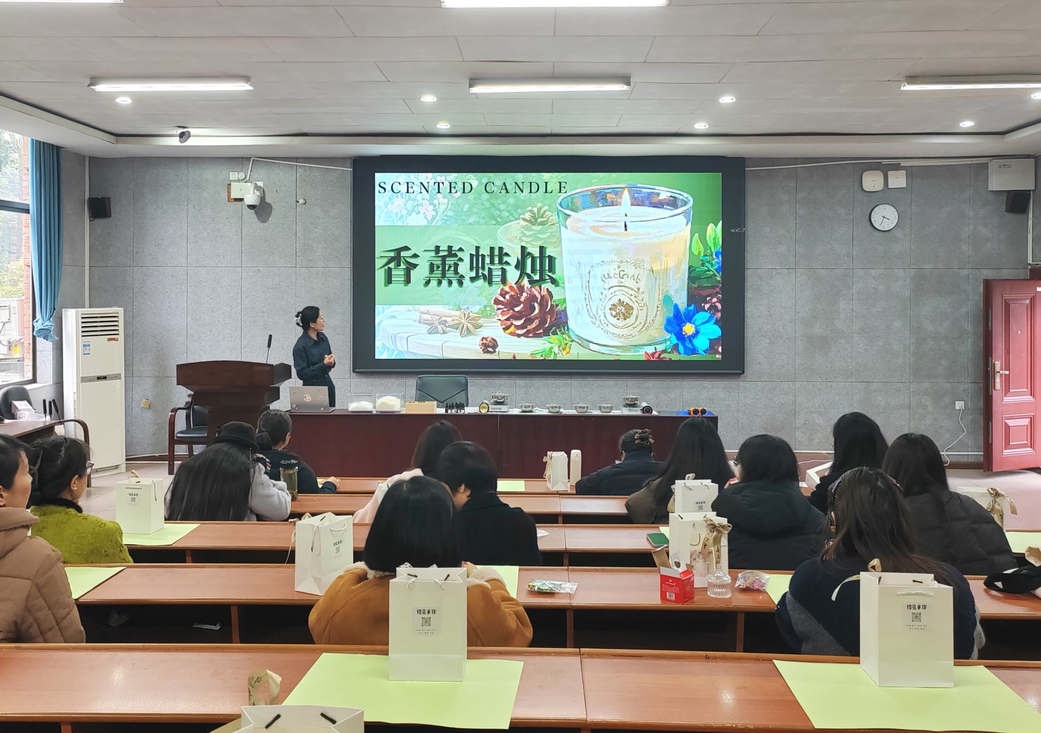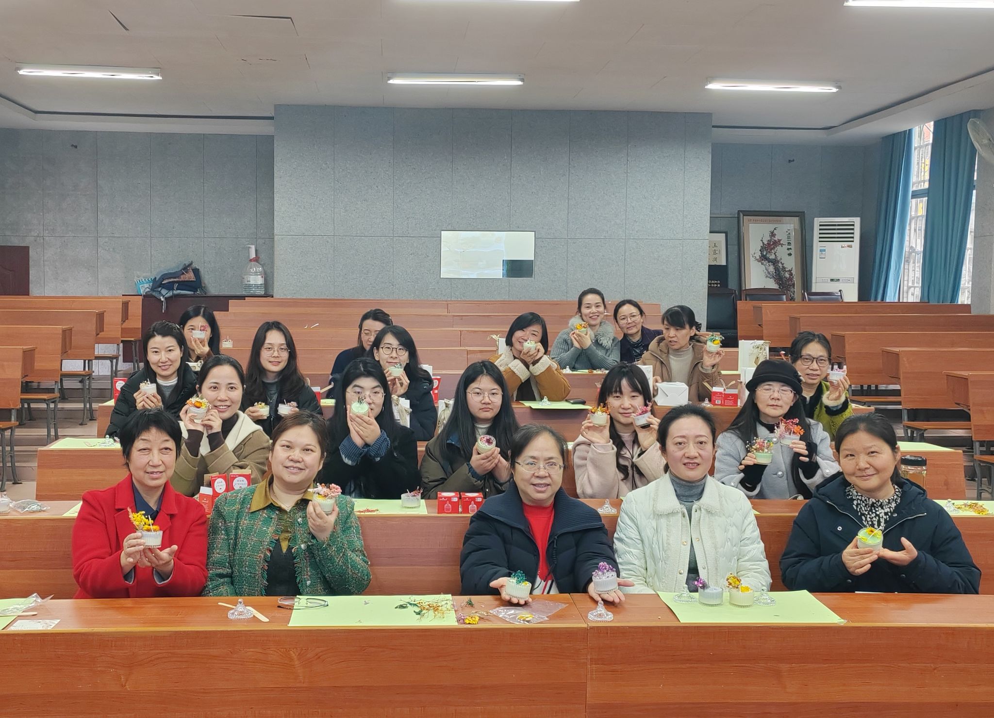 现场暖光融融,香气氤氲,老师们互相交流心得,分享制作乐趣,在欢声笑语中完成了自己的手工作品。活动不仅让老师们在忙碌的教学科研之余放松了身心,感受手工创作的乐趣与成就感,更在团队互动中进一步增进了彼此的情感,增强了学院的凝聚力与向心力。