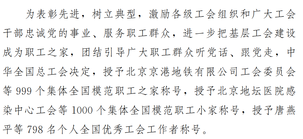 中华全国总工会关于表彰全国模范职工之家 全国模范职工小家 全国优秀工会工作者的决定